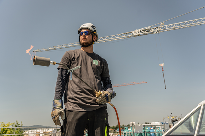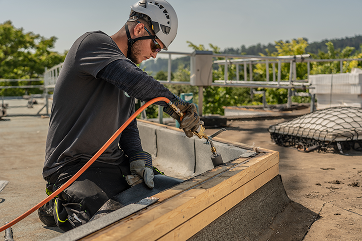 Als Abdichter*in EFZ arbeitest du mit den unterschiedlichsten Materialien. Mit Bitumen und Kunststoffen und vielen anderen Stoffen dichtest du Flachdächer, Terrassen, Vordächer und Keller gegen Regen- und Grundwasser ab. Du erstellst auch verschiedene begehbare Beläge auf Terrassen, legst Bodenplatten und begrünst grosse Flächen. Als Abdichter*in EFZ dichtest du nicht nur Flachdächer ab. Das Fachwissen ist auch bei Ingenieurbauten wie Brücken oder Tunnels gefragt.