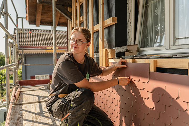 Mit der Fassade erhält jedes Gebäude einen unverwechselbaren Gesamteindruck. Für diesen Arbeitsschritt sind Fassadenbauer*innen EFZ zuständig. Dabei spielt Ästhetik eine wichtige Rolle. Fassadenkonstruktionen sind heutzutage ausgeklügelte Systeme, die mit den verschiedensten Materialien, von Faserzement und Holz über Keramik und Metall bis hin zu Naturstein und Glas sowie Solarmodulen, verkleidet werden können. Das Resultat sind ansprechende und kunstvolle Fassaden.