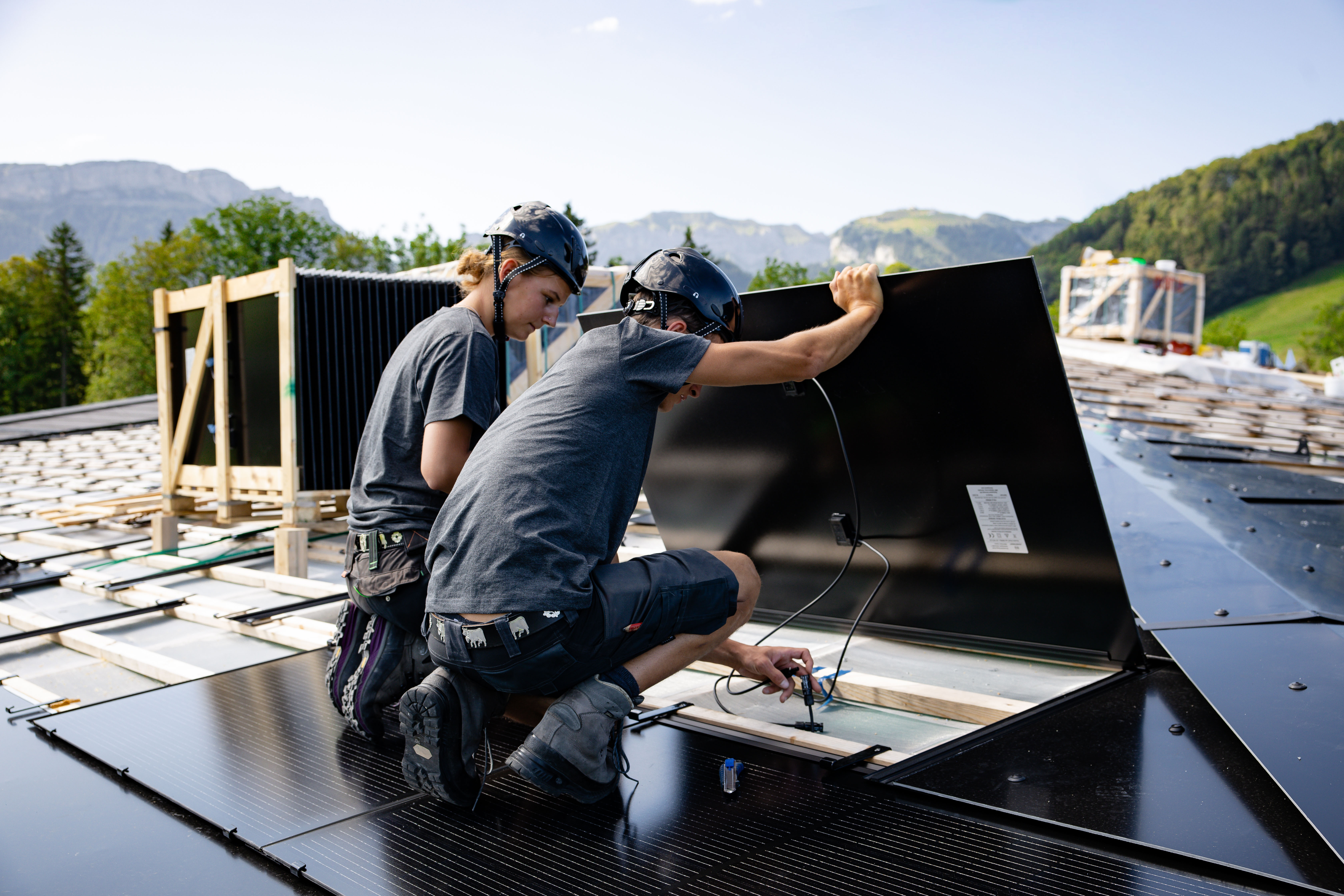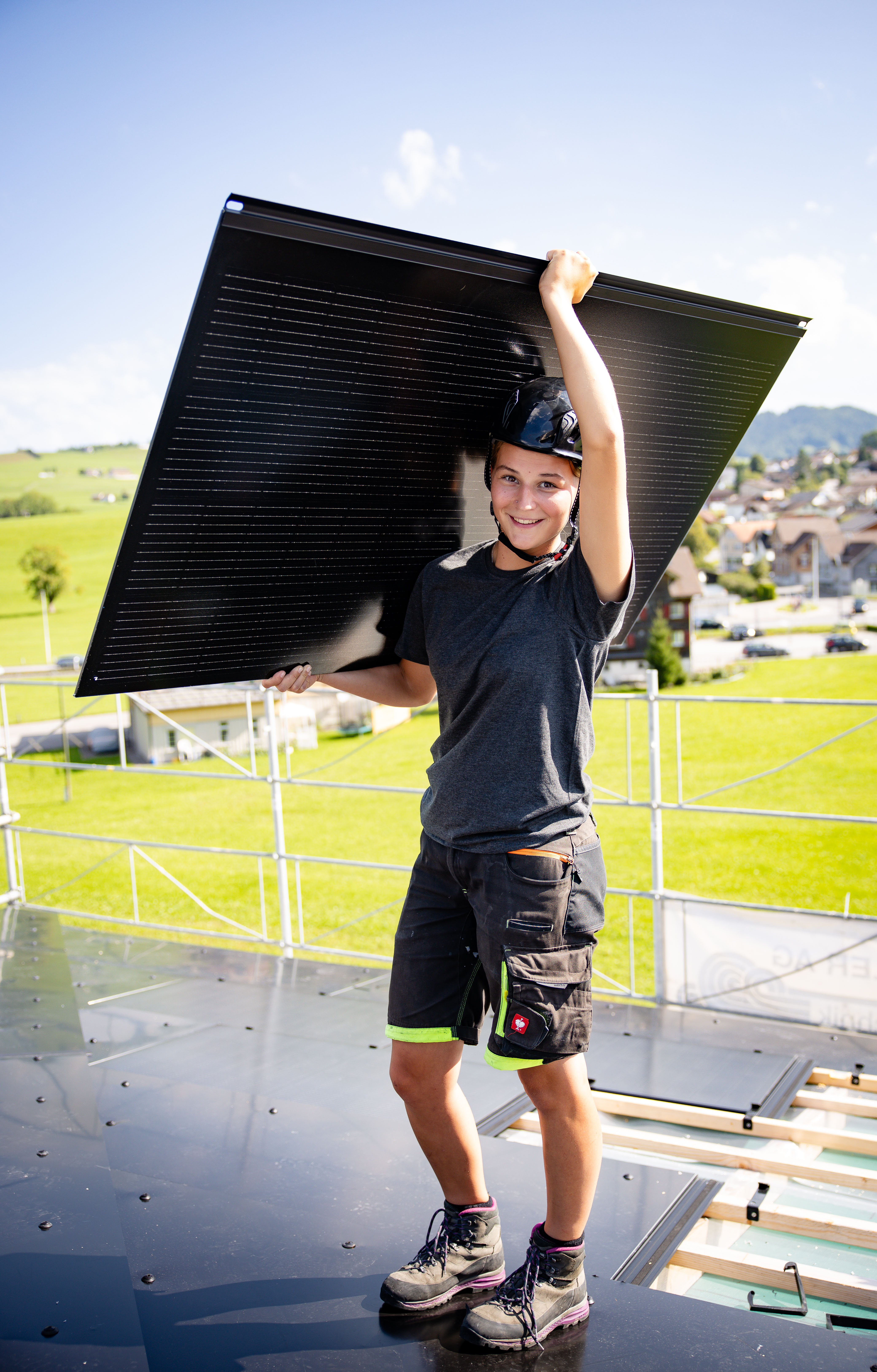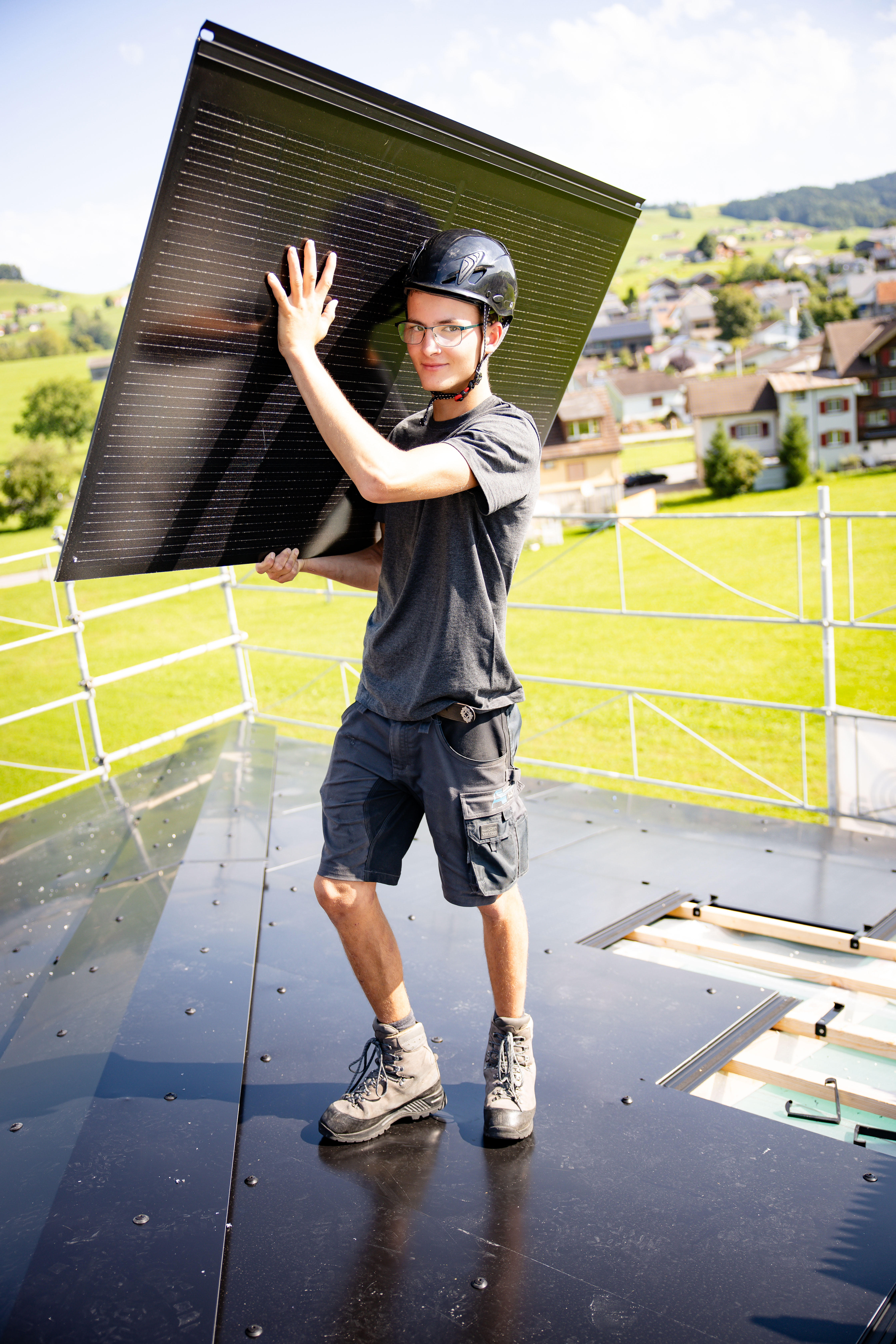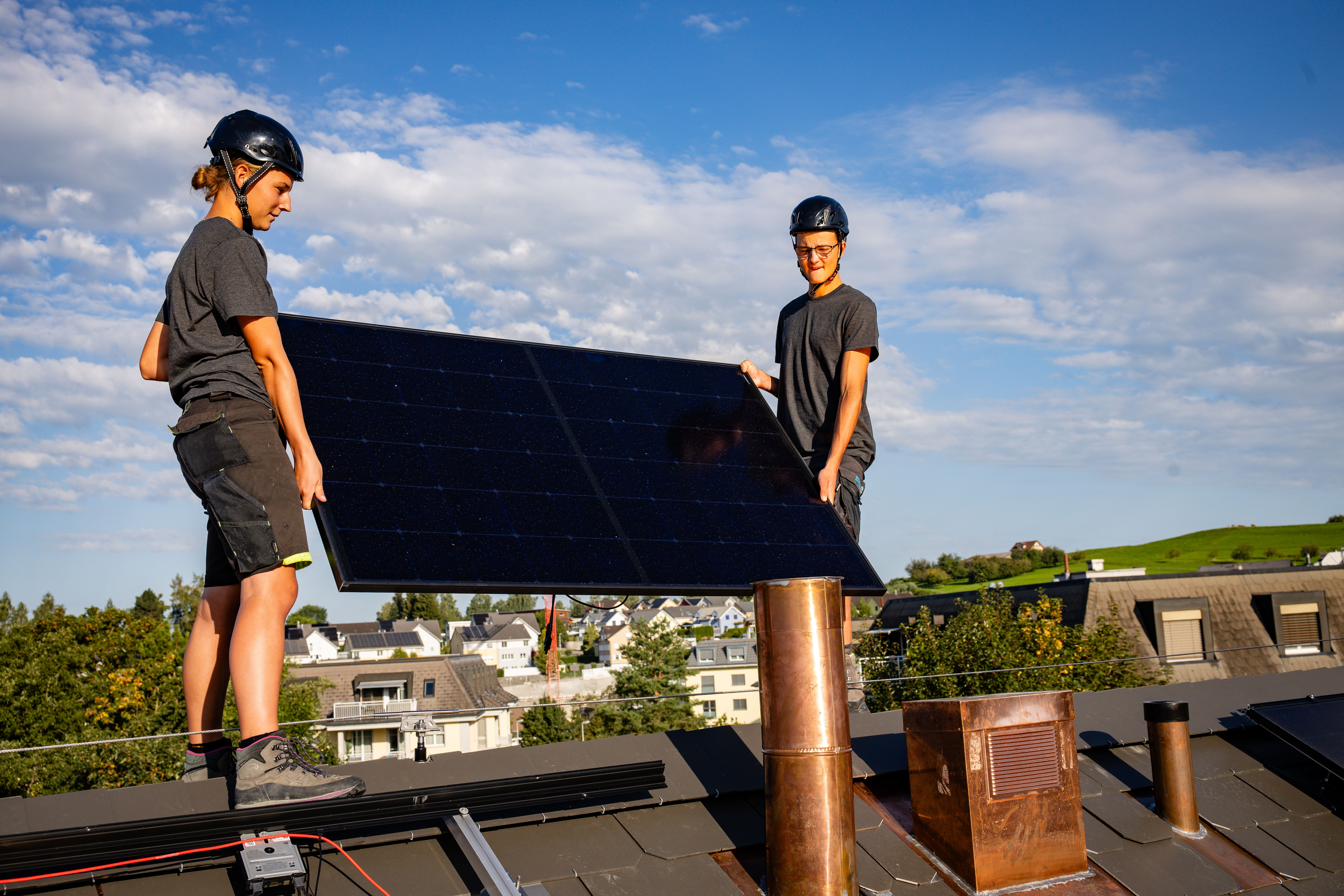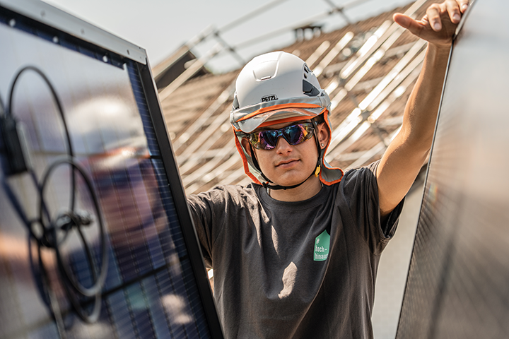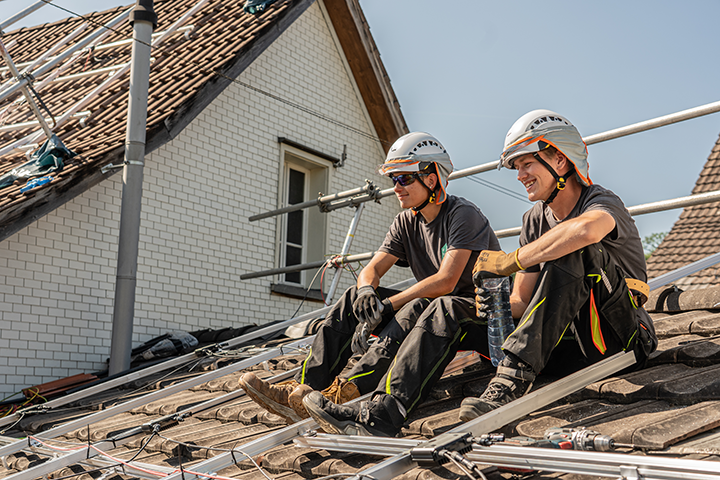 Als Solarinstallateur*in montierst, installierst und reparierst du elektrische Solaranlagen auf Wohn-, Industrie-, Verwaltungs- und Geschäftsgebäuden. Du montierst auch Speicherlösungen und behebst einfache Störungen am Solarkraftwerk. Auch die fach- und umweltgerechte Entsorgung einer Solaranlage gehört zu deinen Kompetenzen. Bei all dem ist die Teamarbeit sehr wichtig – ihr packt gemeinsam an. Dabei koordinierst du deine Aufgaben mit Spezialisten aus anderen Baubereichen und Betrieben. Dank deiner Tätigkeit leistest du einen wichtigen Beitrag zur Energiewende.